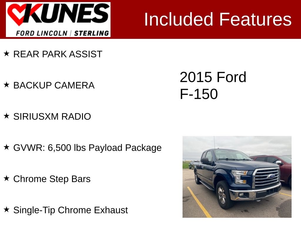 Blue 2015 Ford F-150 XLT REAR PARK ASSIST, BACKUP CAMERA, SIRIUSXM RADIO, 4WD, Chrome Step Bars, GVWR: 6,500 lbs Payload Package, Single-Tip Chrome Exhaust.