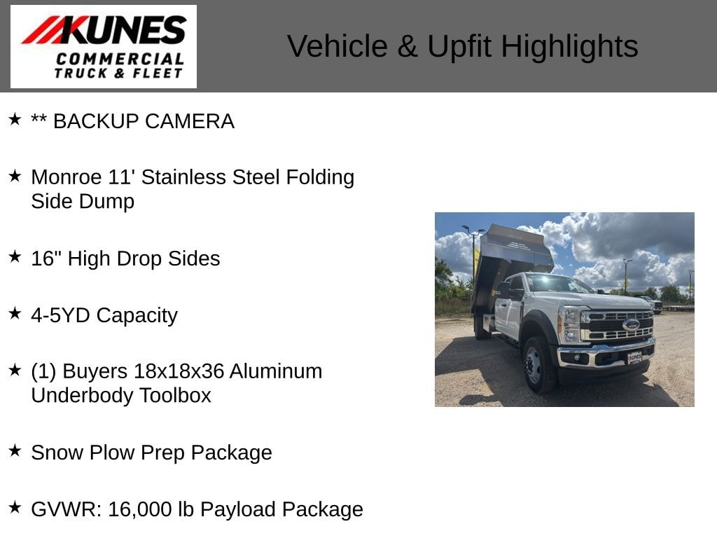 ** BACKUP CAMERA, Monroe 11' Stainless Steel Folding Side Dump, 16" High Drop Sides, 4-5YD Capacity, (1) Buyers 18x18x36 Aluminum Underbody Toolbox, 4WD, GVWR: 16,000 lb Payload Package, Snow Plow Prep Package.