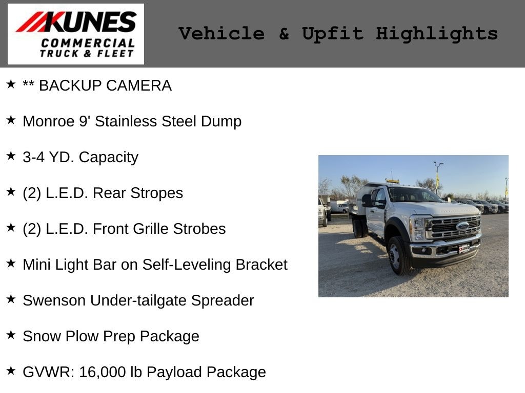 ** BACKUP CAMERA, Monroe 9' Stainless Steel Dump, 3-4 YD. Capacity, (2) L.E.D. Rear Stropes, (2) L.E.D. Front Grille Strobes, Mini Light Bar on Self-Leveling Bracket, Swenson Under-tailgate Spreader, 4WD, GVWR: 16,000 lb Payload Package, Snow Plow Prep Package.