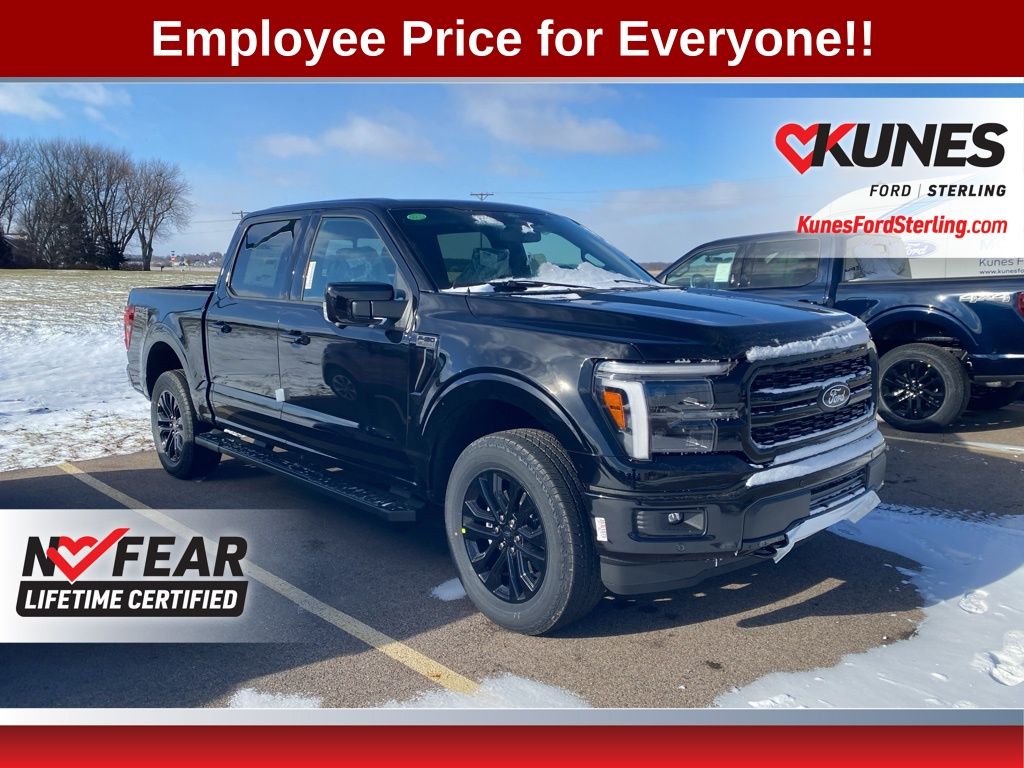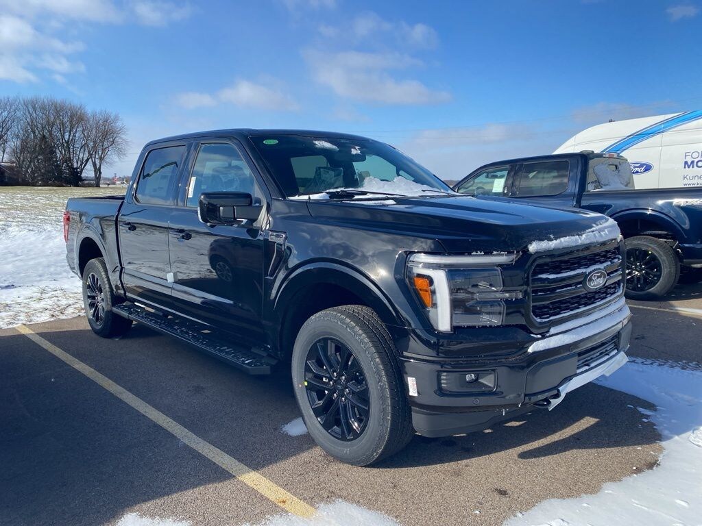 Agate Black Metallic 2026 Ford F-150 Lariat 4WD, 2nd Row Heated Seats, 4 Pickup Box Tie-Down Plates, 4-Wheel Disc Brakes, 4x4 FX4 Off-Road Bodyside Decal, 8 Speakers, ABS brakes, ActiveX Trimmed Bucket Seats, Air Conditioning, Alloy wheels, AM/FM radio: SiriusXM with 360L, Ambient Lighting - Ice Blue Color Only, Auto High-beam Headlights, Auto-dimming door mirrors, Auto-dimming Rear-View mirror, Automatic temperature control, Bed Storage Boxes, Bed Utility Package, Black Exterior Badging, Black Grille, Black Taillamp Bezels, Body-Color Front and Rear Bumpers, Brake assist, Bumpers: chrome, Chrome wheels, Compass, Console Worksurface, Dark Interior Appliques, Delay-off headlights, Driver door bin, Driver vanity mirror, Driver's Side SecuriCode Keyless-Entry Keypad, Dual front impact airbags, Dual front side impact airbags, Electronic Stability Control, Emergency communication system: SYNC 4 911 Assist, Equipment Group 502A High, Ford Connectivity Package (1-Year Included), Front anti-roll bar, Front Bucket Seats, Front Center Armrest, Front dual zone A/C, Front fog lights, Front License Plate Bracket, Front reading lights, Front wheel independent suspension, Fully automatic headlights, FX4 Off-Road Package, Garage door transmitter, Gray Box Side Decal, Heated door mirrors, Heated front seats, Heated steering wheel, Hill Descent Control, Illuminated Driver and Passenger Visors, Illuminated entry, Internet access capable: 5G Modem - Ford Connectivity Package, Lariat Black Appearance Package, LED Box Lighting, Low tire pressure warning, Matte Black Tailgate F-150 Decal, Memory seat, Mobile Office Package, Monotube Rear Shocks, Navigation system: Connected Navigation, Occupant sensing airbag, Off-Road Tuned Front Shock Absorbers, Outside temperature display, Overhead airbag, Overhead console, Panic alarm, Partitioned Lockable Rear Storage, Passenger door bin, Passenger vanity mirror, Power door mirrors, Power driver seat, Power passenger seat, Power steering, Power windows, Power-Adjustable Pedals with Memory, Power-Sliding Rear Window, Radio data system, Radio: B&O Sound System by Bang and Olufsen, Radio: B&O Unleashed Sound System by Bang & Olufsen, Rain sensing wipers, Rear reading lights, Rear seat center armrest, Rear step bumper, Rear window defroster, Remote keyless entry, Rock Crawl Mode, Security system, Speed control, Split folding rear seat, Steering wheel mounted audio controls, SYNC 4 with Enhanced Voice Recognition, Tachometer, Tailgate Step with Work Surface, Telescoping steering wheel, Tilt steering wheel, Traction control, Tray Style Floor Liner Without Carpet Mats, Trip computer, Turn signal indicator mirrors, Twin Panel Moonroof, Variably intermittent wipers, Ventilated front seats, Wheels: 18" Chrome-Like PVD, Wheels: 20" Chrome-Like PVD, Wireless Charging, 4WD.
