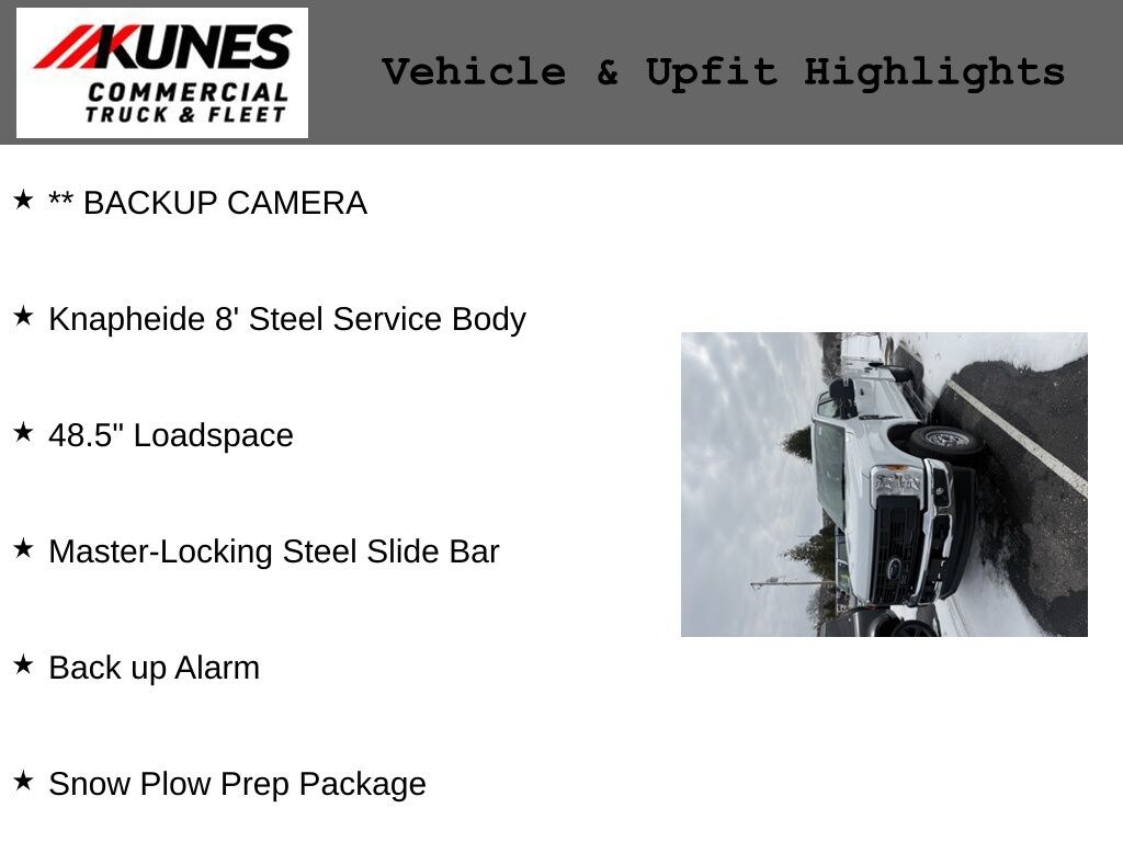 ** BACKUP CAMERA, Knapheide 8' Steel Service Body, 48.5" Loadspace, Master-Locking Steel Slide Bar, Back up Alarm, 4WD, Snow Plow Prep Package.