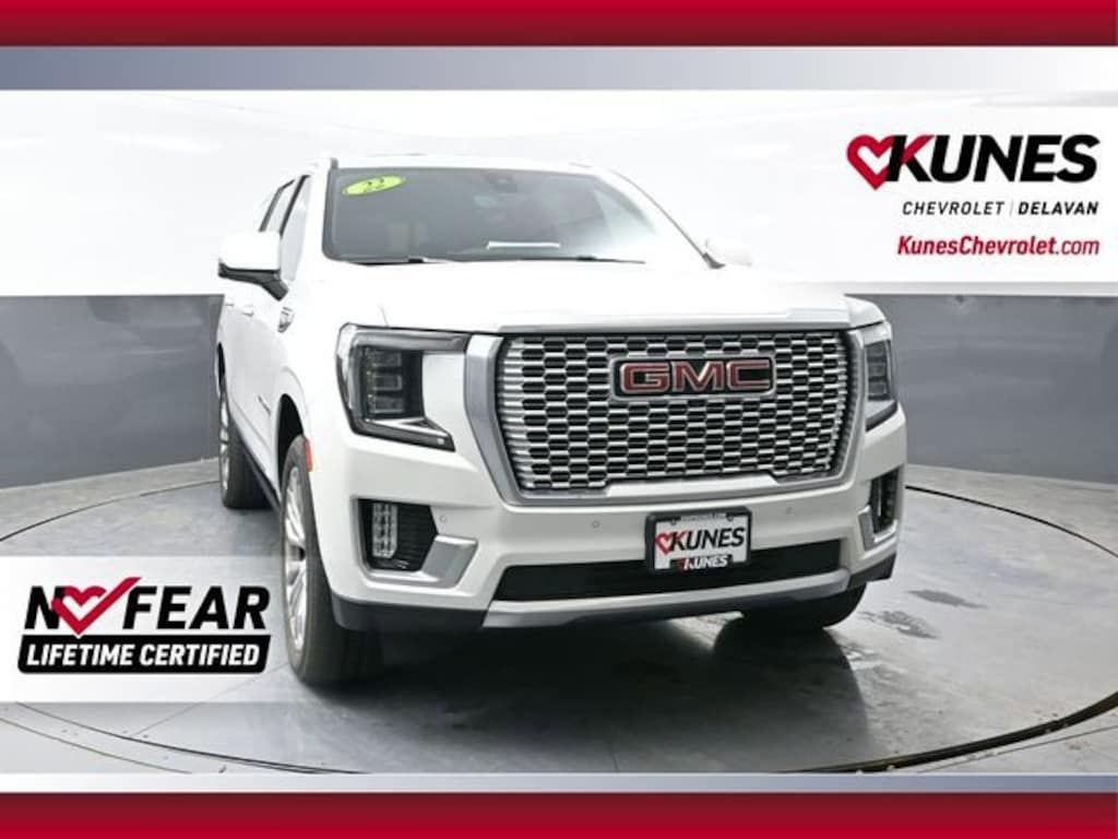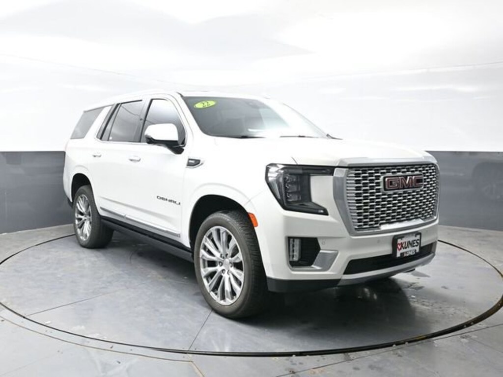 2021 GMC Yukon Denali White Frost Tricoat 4WD EcoTec3 6.2L V8Recent Arrival! CARFAX One Owner. Denali Premium Package: aluminum wheels, panoramic sunroof, power retractable running boards Advanced Security Package: enhanced security system Advanced Technology Package: adaptive cruise control, backup camera, collision warnings Premium exterior White Frost Tricoat WiFi Hotspot Power running boards and assist steps Panoramic sunroof/moonroof Heated front and rear seats, heated steering wheel Blind spot monitoring, cross traffic alert, lane keep assist Rear parking sensors and 360 aerial view backup camera Heads-up display Navigation via aerial view display system 6.2L V8 engine, 10-speed automatic, four-wheel drive Active suspension, limited slip differential Power liftgate, remote trunk release Remote engine start, keyless entry, keyless start Multi-zone climate control with rear air conditioning Memory settings for seats and mirrors Carpeted floor mats, leather steering wheel Universal garage door opener Satellite radio, MP3, auxiliary audio input Aluminum wheels with wheel locks Fog lamps, privacy glass, luggage rack