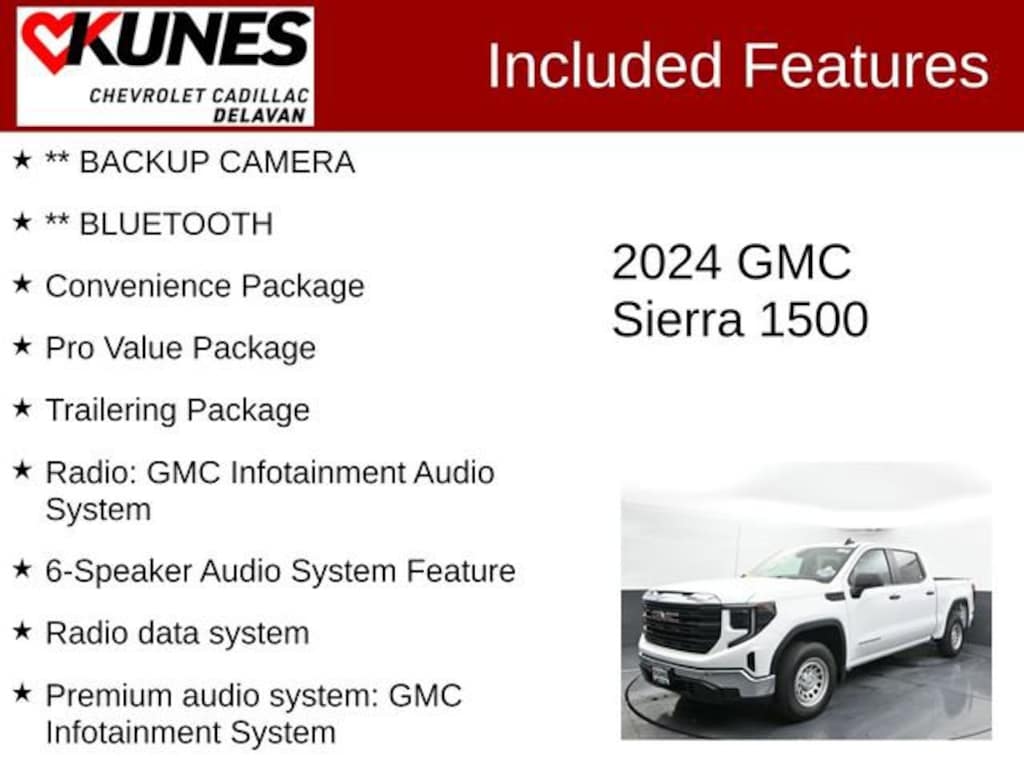 ** BACKUP CAMERA, ** BLUETOOTH, 8-Speed Automatic, 4WD, Black Cloth, 2 Charge/Data USB Ports, 4-Way Manual Driver Seat Adjuster, 4-Way Manual Passenger Seat Adjuster, 6-Speaker Audio System Feature, Chrome Header w/Flat Black Grille Insert Bars, Convenience Package, Cruise Control, Deep-Tinted Glass, Delay-off headlights, Driver door bin, Electric Rear-Window Defogger, Front 40/20/40 Split-Bench Seat, Front anti-roll bar, Front Center Armrest w/Storage, Front reading lights, Front wheel independent suspension, GMC Connected Access Capable, Heated Power-Adjustable Outside Mirrors, Hitch Guidance, Illuminated entry, LED Cargo Area Lighting, OnStar & GMC Connected Services Capable, Overhead console, Panic alarm, Passenger door bin, Passenger vanity mirror, Power Front Windows w/Driver Express Up/Down, Power Front Windows w/Passenger Express Down, Power Rear Windows w/Express Down, Premium audio system: GMC Infotainment System, Pro Value Package, Radio data system, Radio: GMC Infotainment Audio System, Rear reading lights, Remote keyless entry, Speed-sensing steering, Split folding rear seat, Trailering Package, Trip computer, Vinyl Seat Trim, Voltmeter, Wireless Apple CarPlay/Wireless Android Auto.